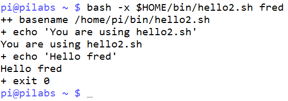 The -x option, which displays the commands as they are executed, is more commonly used. It's useful to know the decision branch that has been chosen by the script. The following shows this in action: