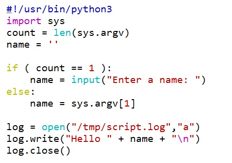 You will notice that we have just altered the final lines and instead of print we now open a file. We also see more of the object-orientated nature of Python, whereby it dynamically assigns the write() and close() methods to the object log, as it is seen as an instance of a file. When we open the file, we open it up for the purpose of appending, meaning that we do not overwrite the existing content if it is already there. If the file is not there, we will create a new file. If we use w, we will open the file for writing, which might translate to overwriting, so take care.