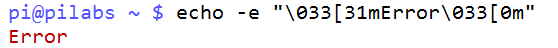 The red text will bring immediate attention to the text and the potential failure of the script execution. The use of color in this way adheres to the basic principles of application design. If you find the code cumbersome, then simply use friendly variables to represent the colors and the reset code.