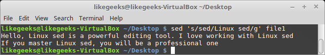 $ sed 's/sed/Linux sed/g' myfile