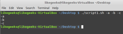 $ ./script1.sh -a -b -c