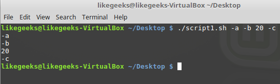 $ ./script1.sh -a -b 20 -c