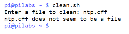 - Now remove the commented and empty lines with clean_file $HOME/ntp.conf