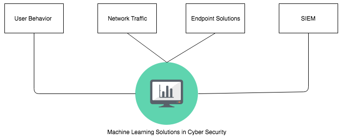 Today signature-based systems are being gradually replaced by intelligent cybersecurity agents. Machine learning products are aggressive in identifying new malware, zero day attacks, and advanced persistent threats. Insight from the immense amount of log data is being aggregated by log correlation methods. Endpoint solutions have been super active in identifying peripheral attacks. New machine learning driven cybersecurity products have been proactive in strengthening container systems like virtual machines. The following diagram gives a brief overview of some machine learning solutions in cybersecurity: