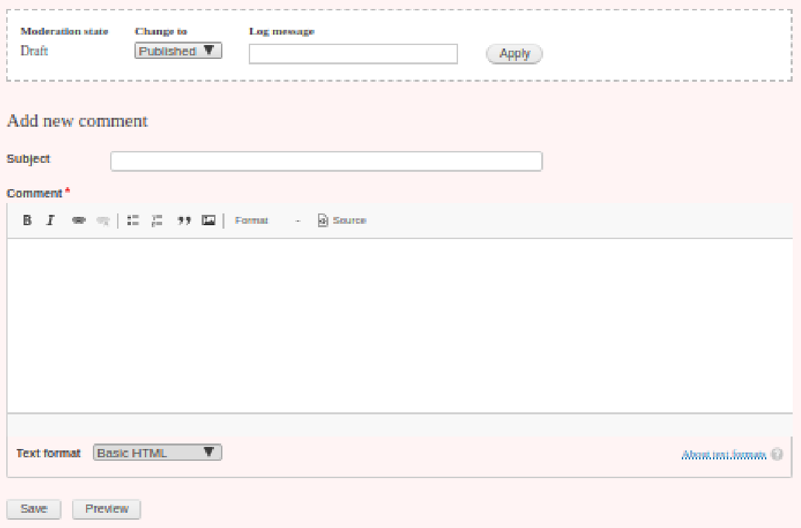 This form allows the moderator to change the state of the content and add a log comment about the transition.