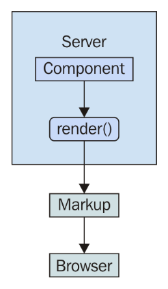 Chapter 10, Server-Side React Components, discusses how React renders components to the DOM when rendered in the browser. It can also render components to strings, which is useful for rendering pages on the server and sending static content to the browser.