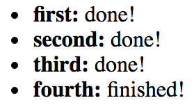It's the job of the TodoList component to render the todo list items. When AddTodoMutation takes place, the TodoList component needs to be able to render this new item. Relay takes care of updating the internal data stores where all of our GraphQL data lives. Here's a look at the item list again, with several more todos added: