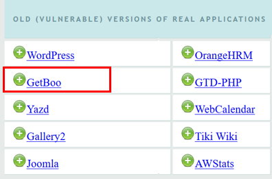 - From the OWASP Landing page, click the link to access the GetBoo application, as follows: