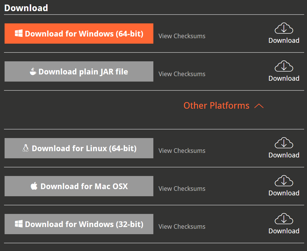 After deciding on the edition you need, you have two installation options, including an executable or a plain JAR file. The executable is only available in Windows and is offered in both 32-bit or 64-bit. The plain JAR file is available for Windows, macOS, and Linux.