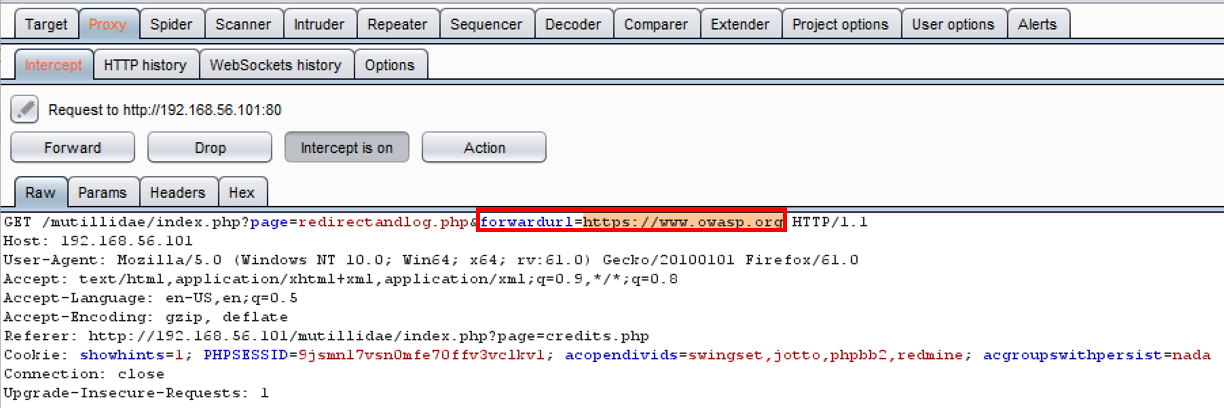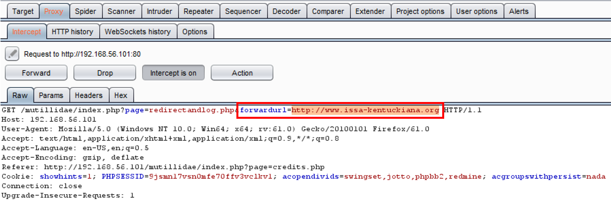 - Replace the value of the forwardurl parameter to be https://www.owasp.org instead of the original choice of http://www.issa-kentuckiana.org: