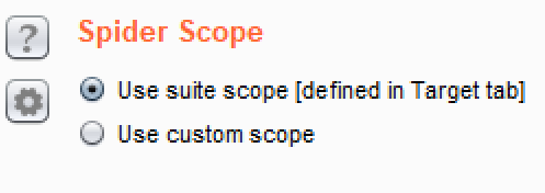 - Spider Scope: It provides the ability to set the Spider Scope, either based on the Target | Site map tab or a customized scope:
