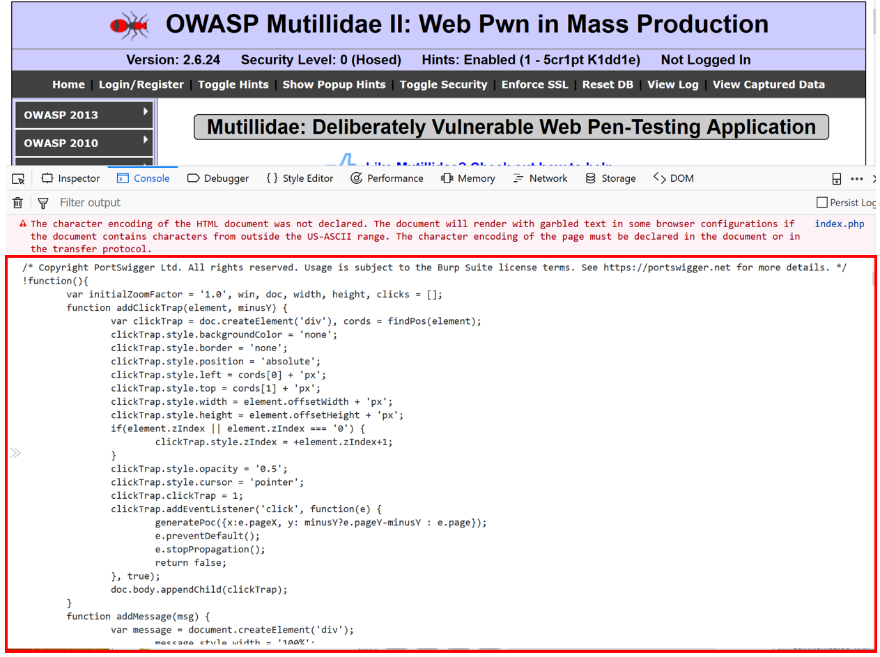 - Navigate to the Home page of the OWASP Mutillidae II.