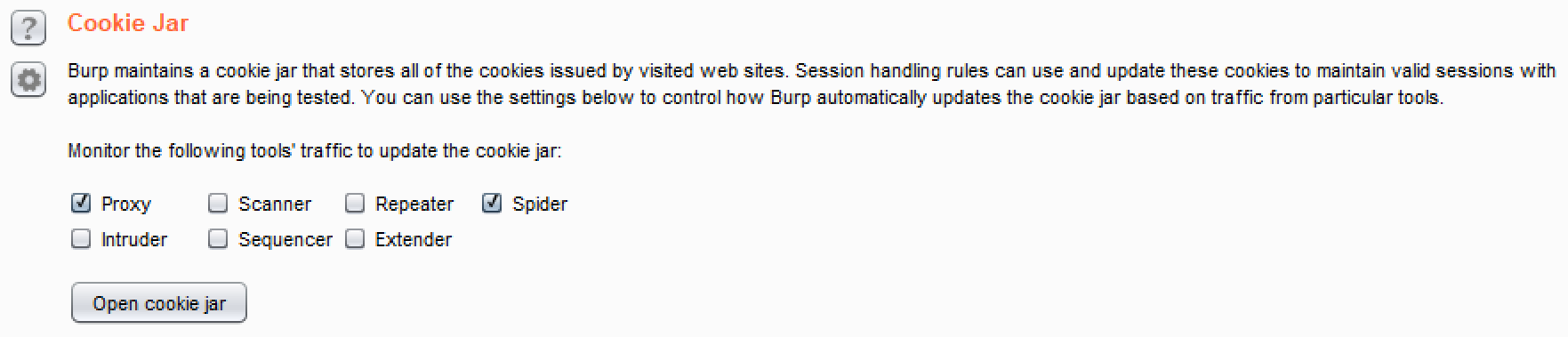 - Cookie Jar: It provides a listing of cookies, domains, paths, and name/value pairs captured by Burp Proxy (by default):