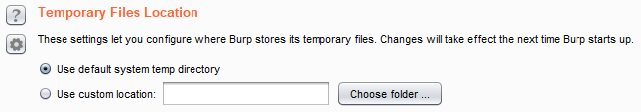 - Temporary Files Location: It provides the ability to change the location where temporary files are stored while running Burp: