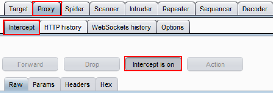 - Switch to the Proxy | Intercept tab, and press the Intercept is on button.