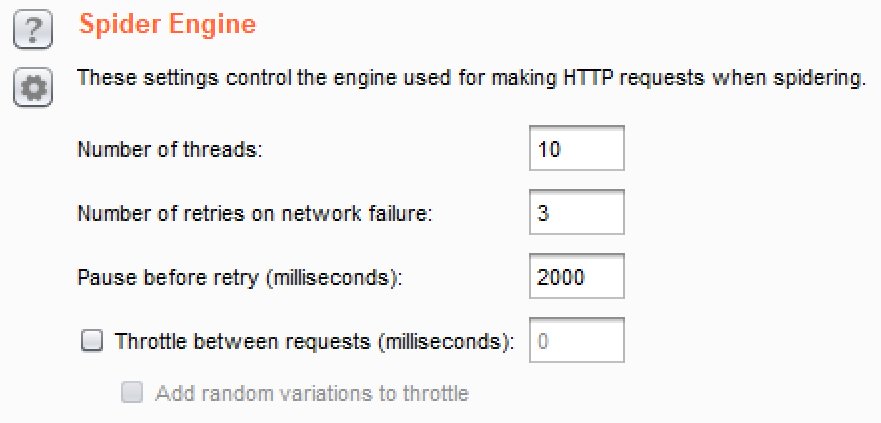 - Crawler Settings: It provides the ability to regulate the number of links deep Spider will follow; also identifies basic web content to Spider for on a website such as the robots.txt file: