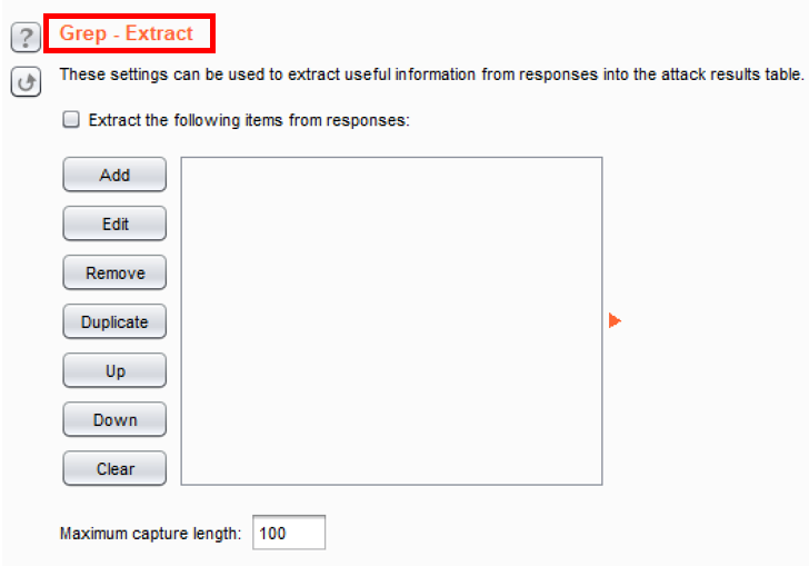 Grep - Extract, when enabled, is another option for adding a column in the attack table whose label is specific to a string found in the response. This option differs from Grep - Match, since Grep - Extract values are taken from an actual HTTP response, as opposed to an arbitrary string.