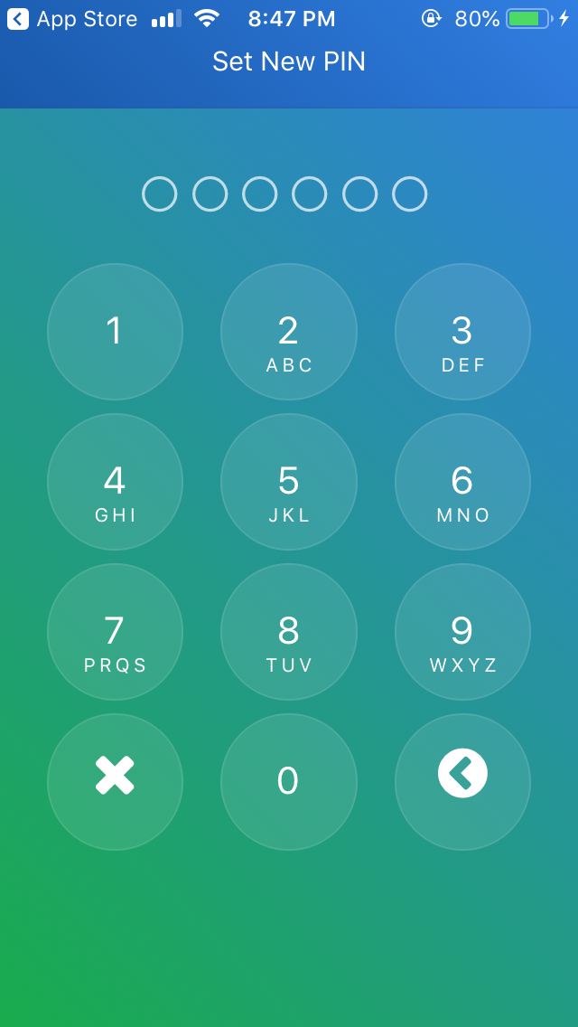The first time you open Toast wallet, you'll be shown the license agreement. Scroll down and you will see the Create a New Wallet button, as shown in the following screenshot on the left. Once you click on this button, you will be asked to set a six-digit pin, as in the following screenshot on the right. This is to prevent your wallet from unauthorized usage. Every time you open your wallet, you need to provide the six-digit pin to gain access to your wallet: