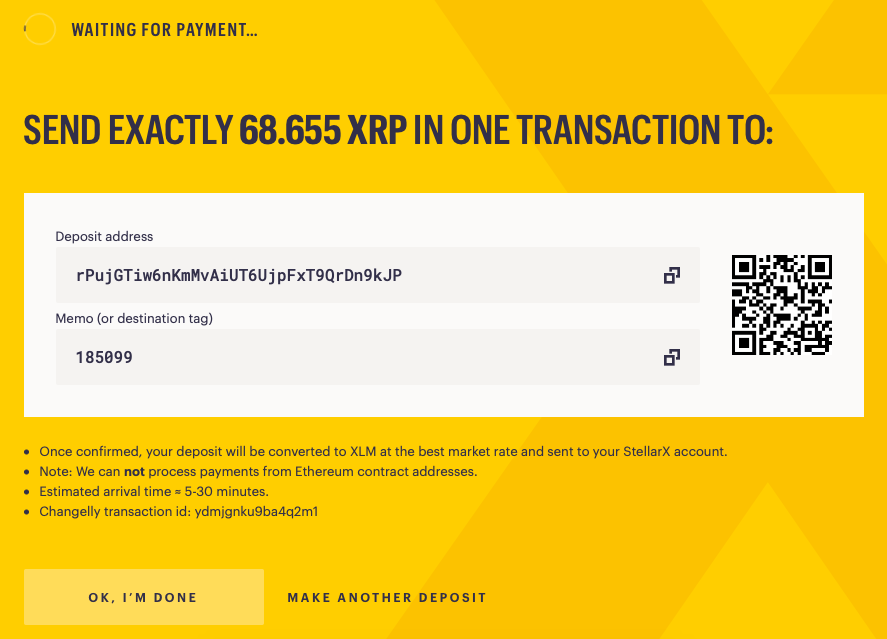 Your XRP will be automatically converted into XLM (Stellar Lumens), as shown in the following screenshot: