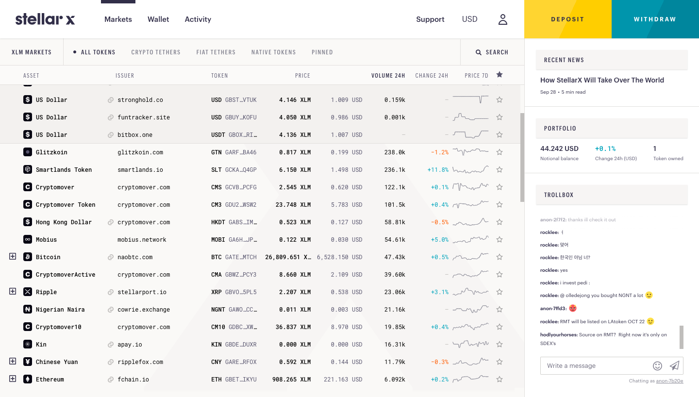 In this section, we will look at how we can exchange XRP for other cryptocurrencies. You need an account in a crypto exchange to make a trade. You can use the exchange of your choice, but here we are going to use StellarX because it's a decentralized peer-peer exchange. Please go through the process of account creation in StellarX. You will also be creating a Stellar wallet in the process, so make sure you note your keys down.