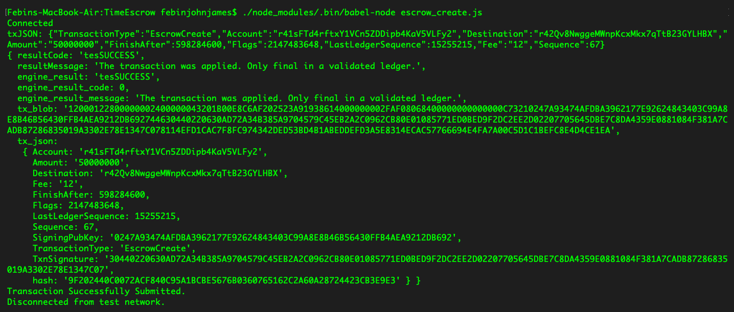 Once the validators confirm the transaction, the destination account will be credited with the escrow amount. Let's now see how we can use this code to build a web app that'll allow users to easily create time-held escrows.