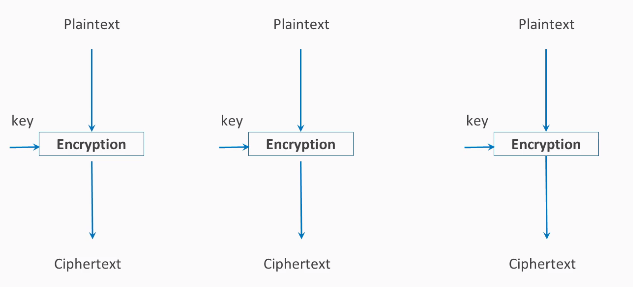 In the ECB method, each block of plaintext is encrypted with the key separately, so if you have two blocks of plaintext that are the same, they will result in identical ciphertext: