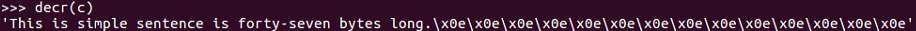 If we decrypt that, we will get our original input plus one byte of 01 at the end. x01 is the Python notation for a single byte with the binary value of 1. If you modify the input by keeping the first 47 bytes alone and changing the last byte to A or 65 and decrypt it, you'll get a padding error. This error message may seem harmless, but in fact it makes it possible to completely subvert the encryption.