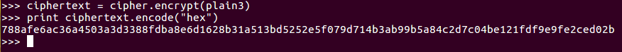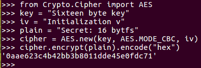 To do it in Python, here's how we did the previous AES, which was the EBC mode. By default, you don't specify the mode.