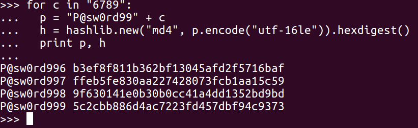 >>> c31 = 1 ^ 235 mod = prefix + chr(c30) + chr(c31) + c[32:]