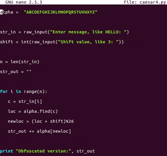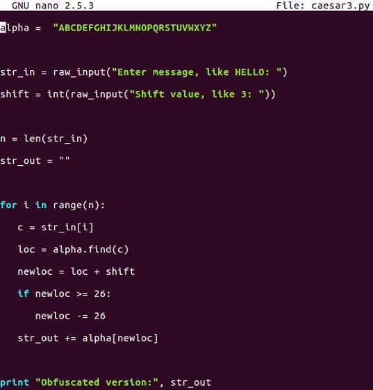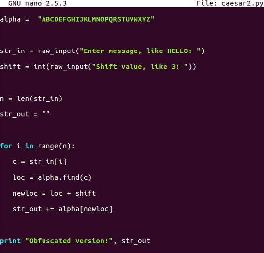 print "Obfuscated version:", str_out
