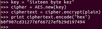 >>> plain = 'encrypt this messagf'