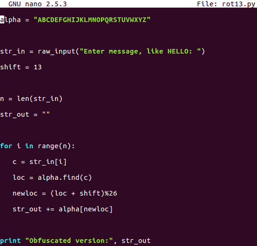 In the next section, we will look at the Caesar cipher and ROT13 obfuscation techniques.