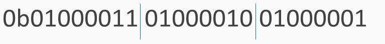 The three-letter string ABC can be interpreted as a 24-bit string that looks like this: