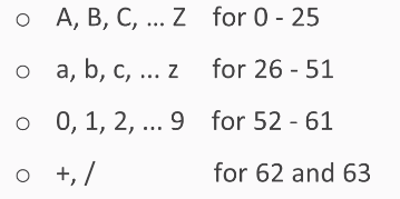 We use the capital letters for the first 26, lowercase letters for another 26, the digits for another 10, which gets you up to 62 characters. In the most common form of base64, you use + and / for the last two characters: