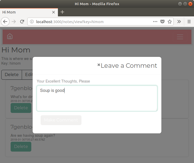 That was a lot of code, but we now have the ability to compose messages, display them on the screen, and delete them, all with no page reloads.