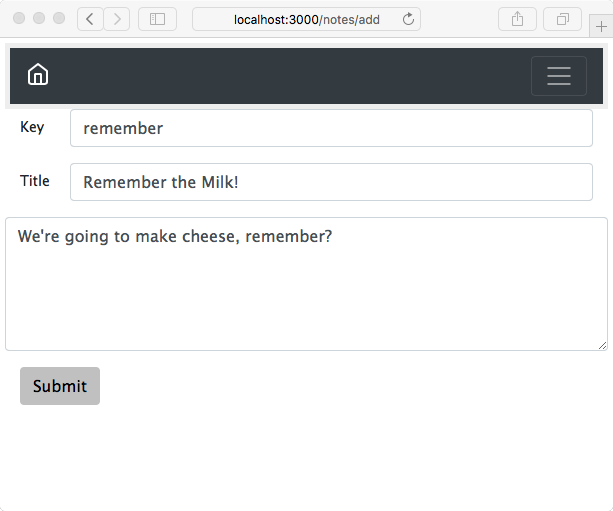 The next major glaring problem is the form for adding and editing notes. As we said earlier, it's easy to get the text input area to overflow a small screen. On the other hand, Bootstrap has extensive support for making nice-looking forms that work well on mobile devices.