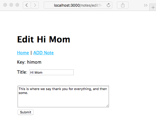 Now that we've looked at the create and read operations, let's look at how to update or edit a note.