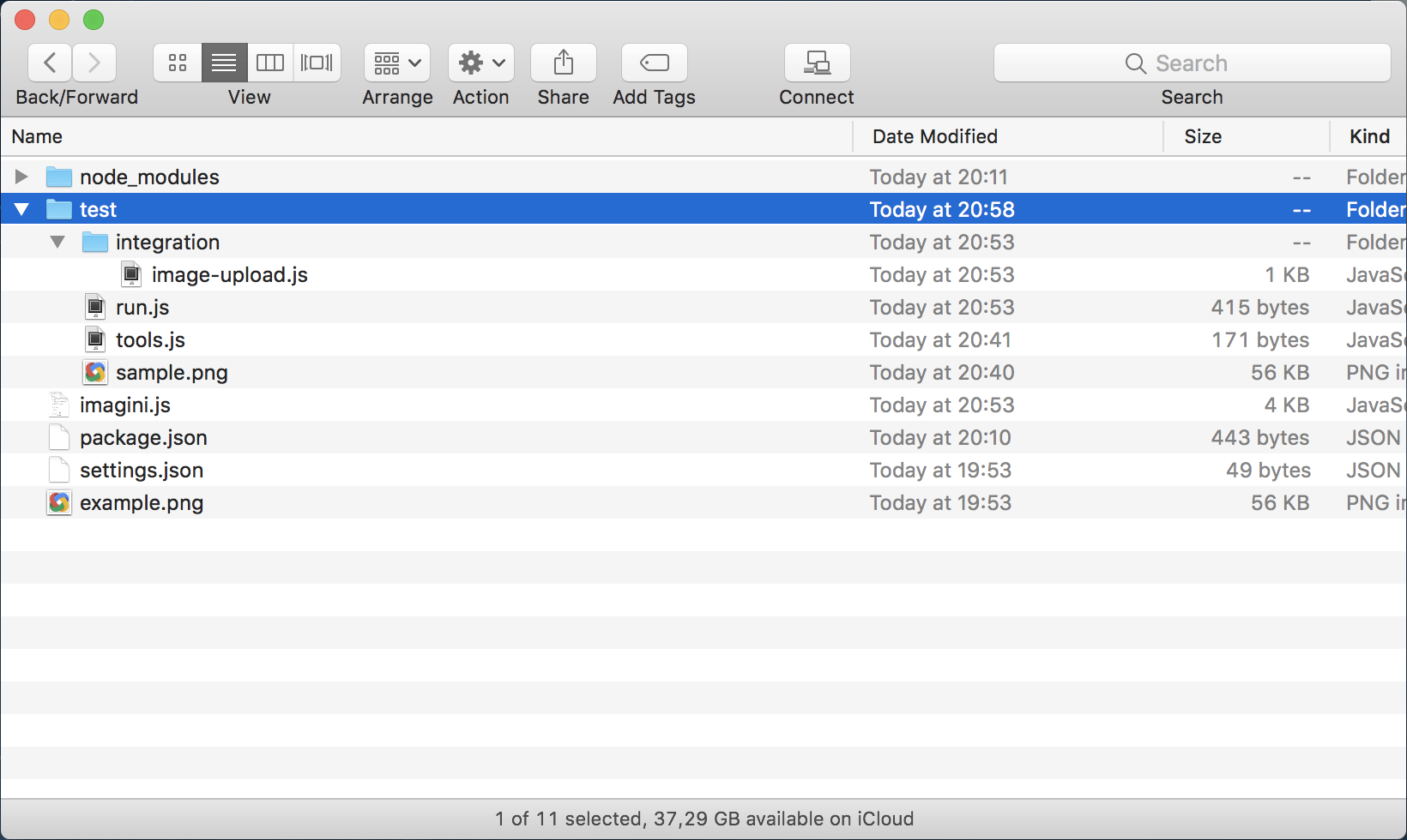 Then, we add our first integration file's test – a simple image upload: