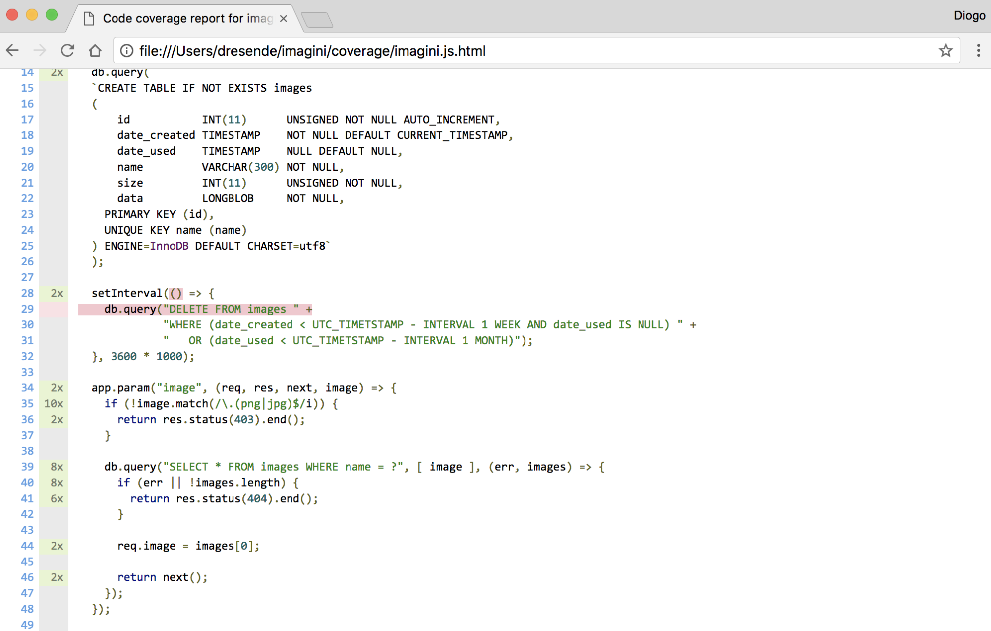 We're now over 97% coverage. Let's bend time and test our timer. Create a new test file called image-delete-old.js, and add the following content: