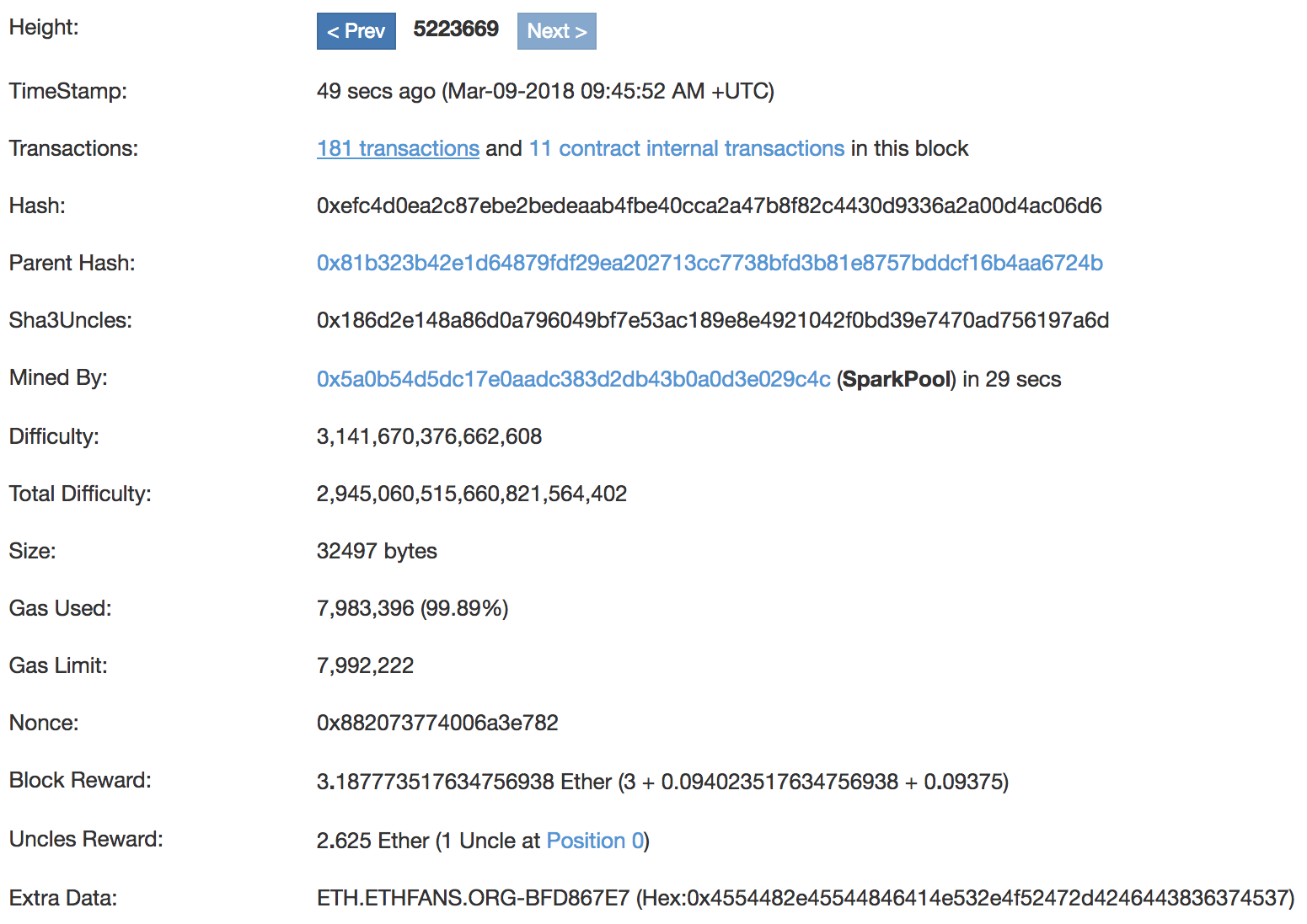 Here is the data from an example Ethereum block, from block 5223669: